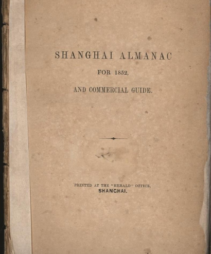 年鑒作為一種文字體裁,在西方社會(huì)有著悠久的歷史。將西方年鑒文化帶入中國的是英國人。1843年,上海開埠。1850年,英國商人在上海創(chuàng)辦《北 華 捷 報(bào)》(North-China Herald)。1851年12月,北華捷報(bào)社刊印了《上海年鑒(1852)》(Shanghae Almanac for 1852 and Commercial Guide)。這是上海歷史上的第一本年鑒,也是已知中國內(nèi)地的第一本年鑒。