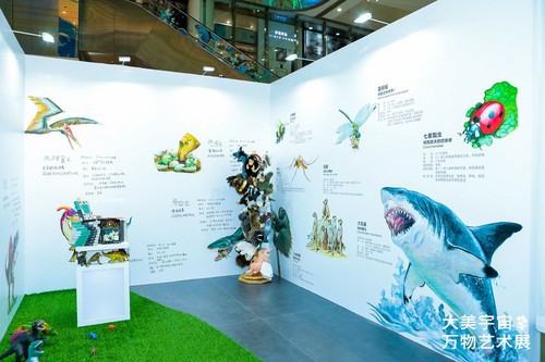 該微型科普展共設(shè)有科普畫(huà)展區(qū)、神奇動(dòng)物區(qū)和宇宙探索區(qū)三個(gè)MINI展區(qū),以及一個(gè)活動(dòng)體驗(yàn)區(qū)。展覽包括10個(gè)主題:花、鳥(niǎo)、樹(shù)、蝶,恐龍、昆蟲(chóng)、貓、狗、動(dòng)物和宇宙,這也是展名“大美宇宙·萬(wàn)物藝術(shù)”的由來(lái)。