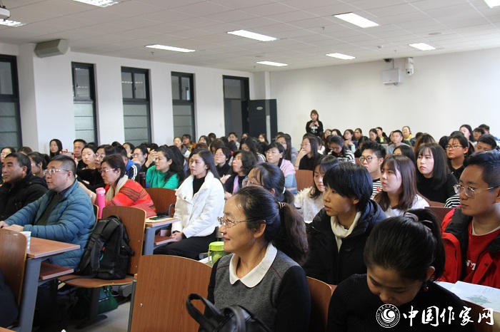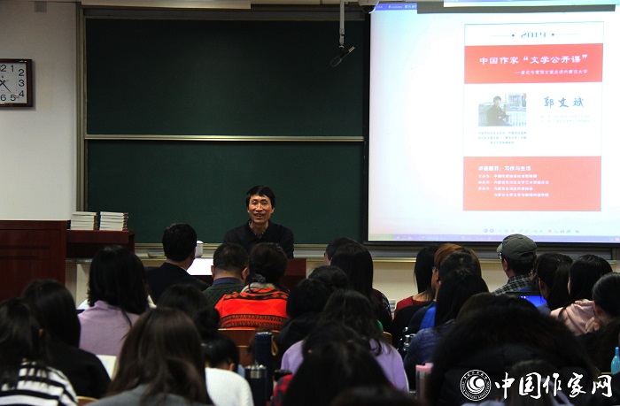 當(dāng)日下午,郭文斌在內(nèi)蒙古大學(xué)作題為“寫作與生活”的講座。他結(jié)合自己的具體創(chuàng)作經(jīng)歷談到,生活是創(chuàng)作的源泉,要從熟悉的生活里尋找創(chuàng)作資源和素材。1998年是郭文斌創(chuàng)作道路上的一條分水嶺,從癡迷并探索現(xiàn)代小說(shuō)、先鋒小說(shuō)的“并不順利”,到回歸“故鄉(xiāng)寫作”的傳統(tǒng)文化領(lǐng)域后找到“敘述的節(jié)奏感、愉悅感、狂歡感”,進(jìn)而開(kāi)始有意識(shí)地寫作“農(nóng)歷”系列。郭文斌坦言:“熟悉的鄉(xiāng)土、山川、河流激活了我的童年記憶和寫作潛能”。他還結(jié)合自己的作品《農(nóng)歷》《尋找安詳》《醒來(lái)》等,從哲學(xué)、社會(huì)學(xué)、心理學(xué)等層面解讀“鄉(xiāng)愁”“農(nóng)歷”“安詳”等意象的現(xiàn)實(shí)意義,認(rèn)為文學(xué)作品對(duì)于人的心靈具有干預(yù)、塑造、滋養(yǎng)的功能,作家的創(chuàng)作不能停留在物質(zhì)、感官等層面,而是要進(jìn)一步深入人的情感世界、道德世界,深刻感知、挖掘人的主體性。