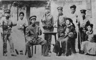 1913年,清華學(xué)校讀書時(shí),聞一多在話劇《革命軍》中飾演革命黨人(右一)。