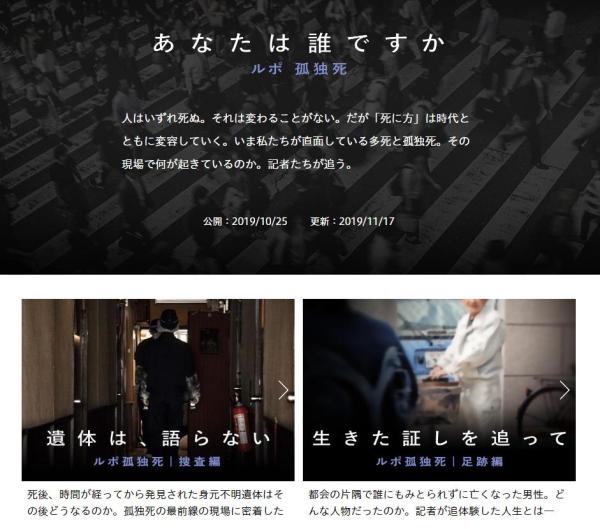 日本媒體常有對(duì)“孤獨(dú)死”的報(bào)道。圖為朝日新聞的專題報(bào)道頁面