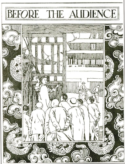 1921年聞一多擔(dān)任《清華年刊》美術(shù)編輯期間創(chuàng)作的插畫,圖片上方是 “BEFORE THE AUDIENCE”(面對(duì)聽(tīng)眾)