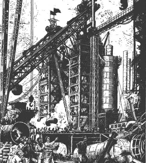 鞍山煉鐵爐之修復 古元 作 發(fā)表于《人民文學》1949年第1期