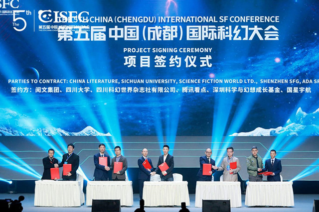 11月22日,以“多元幻想,多彩未來(lái)”為主題的第五屆中國(guó)(成都)國(guó)際科幻大會(huì)在成都召開。本次科幻盛宴為期三天,包括“2019科幻高峰會(huì)議暨亞洲科幻會(huì)議”、“銀河之夜”頒獎(jiǎng)盛典、科幻主題系列巡展及40余場(chǎng)行業(yè)高峰論壇談,全面展示了以科幻文學(xué)為源頭的中國(guó)科幻產(chǎn)業(yè)發(fā)展現(xiàn)狀及未來(lái)趨勢(shì)。與往屆會(huì)議相比,本屆大會(huì)更注重科幻事業(yè)的“國(guó)際化”、“產(chǎn)業(yè)化”發(fā)展,邀請(qǐng)了來(lái)自14個(gè)國(guó)家的近60位國(guó)際嘉賓、300余位中國(guó)知名科幻作家、相關(guān)學(xué)者及產(chǎn)業(yè)精英共同出席。閱文集團(tuán)作為此次大會(huì)的重要合作伙伴,在科幻文學(xué)培育、出版、IP運(yùn)營(yíng)開發(fā)等方面與會(huì)議主辦方達(dá)成深度戰(zhàn)略合作,同時(shí)旗下作家連續(xù)三年摘得科幻最高獎(jiǎng)“銀河獎(jiǎng)”桂冠,依托平臺(tái)力量進(jìn)一步推動(dòng)以文學(xué)為代表的科幻作品向精品化、主流化不斷邁進(jìn)。