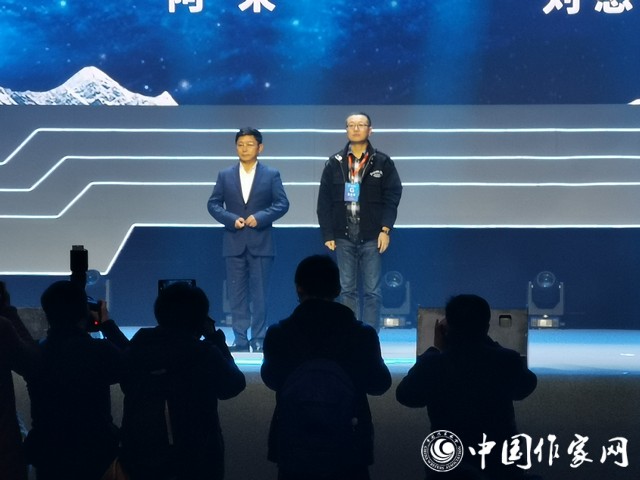 阿來(左)榮獲第30屆科幻銀河獎“特別貢獻(xiàn)獎”,劉慈欣(右)入選“銀河科幻名人堂”。