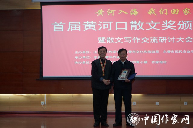 11月23日,首屆黃河口散文獎(jiǎng)?lì)C獎(jiǎng)典禮在山東省東營(yíng)市東營(yíng)職業(yè)學(xué)院舉行。