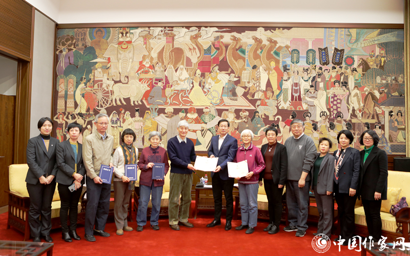 國家圖書館館長饒權(quán)代表國圖接受捐贈(zèng)并向楊晦先生子女頒發(fā)捐贈(zèng)證書