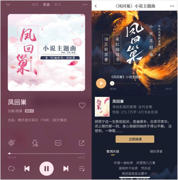 此次閱文集團(tuán)與騰訊音樂娛樂集團(tuán)的合作,主要是圍繞經(jīng)典及當(dāng)紅文學(xué)IP進(jìn)行小說主題曲、小說插曲、人物角色曲等個(gè)性化音樂內(nèi)容的定制和宣發(fā),實(shí)現(xiàn)“文學(xué)+音樂”的破界融合。雙方一站式的合作機(jī)制確保了優(yōu)質(zhì)音樂作品的產(chǎn)出,在具體IP甄選、音樂制作過程中,作家和編輯的高度參與為文學(xué)IP內(nèi)涵的精準(zhǔn)理解和表達(dá)提供保障;騰訊音樂娛樂集團(tuán)則匹配最為專業(yè)、適合的音樂制作團(tuán)隊(duì)及歌手,定制化和精準(zhǔn)化的提供音樂作品制作方案,滿足書粉、音樂愛好者的音樂需求和聽覺體驗(yàn)。