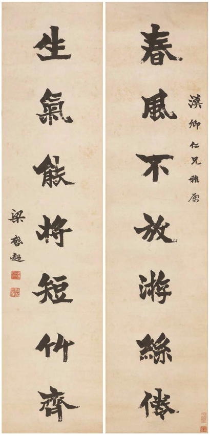 梁啟超書贈張學(xué)良書法七言聯(lián)