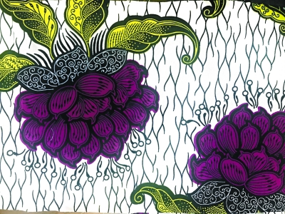 當(dāng)晚,我按圖索驥尋找到河南路的紡織品店??吹甑拇蠼憬o我看了幾樣印染大麗花的被面、被套和枕套以及毛巾用品。她說她原來就在印染廠車間工作,每天都能聽到機(jī)器的轟鳴,因此現(xiàn)在和人說話都要很大聲音。她說以前印染都是機(jī)器漿染,布料很硬的,要漿染很多遍,而且一次只能一個(gè)顏色,容易對(duì)不準(zhǔn)色線。現(xiàn)在機(jī)器先進(jìn)了,一次性可以染出四五個(gè)顏色?,F(xiàn)在青島的工廠基本都搬到高密,因此她店里的印花布都是高密產(chǎn)的。我把這些花樣發(fā)給孫基亮先生看,他說有些是印度的花卉紋樣,已經(jīng)不再是原有的傳統(tǒng)紋樣。后來在青島做舊書買賣的朋友幫我弄到了一批剛剛停產(chǎn)的印染廠的印染花布,花樣繁復(fù),華美時(shí)尚,雖只是二十幾個(gè)品種,但足以窺見青島印花布曾經(jīng)的輝煌。孫先生看了之后說,“有非洲蠟防(印染工藝)叫康嘎(布)的圖案紋樣”,這足以看到青島印花布也是隨時(shí)代千變?nèi)f化的。