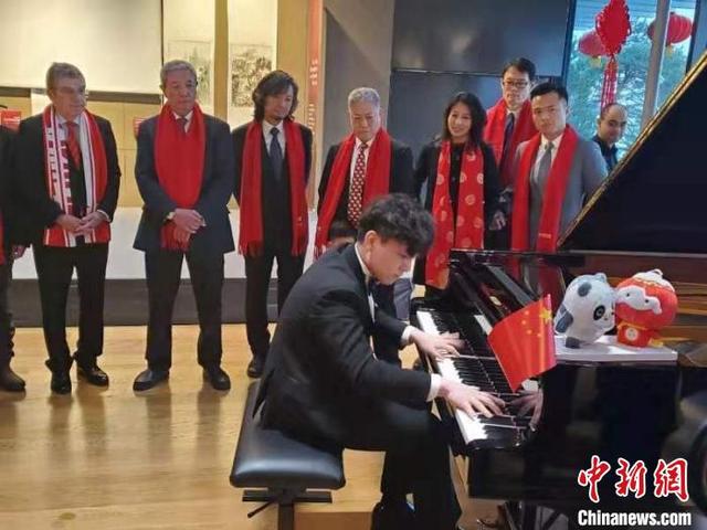 中新網(wǎng)瑞士洛桑1月24日電 “中國和”藝術(shù)展暨“吉祥物送祝福點亮2022”新春系列活動當(dāng)?shù)貢r間24日在瑞士洛桑奧林匹克博物館舉行。國際奧委會主席巴赫、國際奧委會副主席于再清、北京冬奧組委文化活動部部長趙衛(wèi)、恒源祥集團董事長劉瑞旗、中國著名藝術(shù)家何加林等與百余名瑞士華人華僑共賀新春。