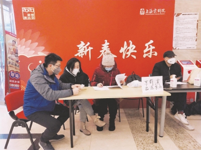 上海京劇院在劇場(chǎng)設(shè)立的現(xiàn)場(chǎng)退票點(diǎn)。
