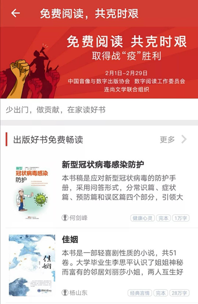 免費(fèi)閱讀,共克時(shí)艱,連尚文學(xué)助力戰(zhàn)“疫”