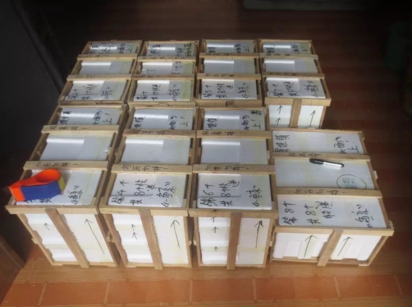 有些困難的是因?yàn)橐阅喟遄觥凹垺?。做泥板比較麻煩和辛苦,未燒之前的泥板很脆,很重,要小心翼翼地拿放和繪畫(huà)。還有困難的是陶瓷成型(釉下青花)的偶然性與一次成型。那時(shí)候即使有對(duì)作品的掌控力,燒窯還是容易出現(xiàn)一些問(wèn)題,因?yàn)闅鉁氐募?xì)小差異,因?yàn)榛鹧娴奈恢藐P(guān)系,甚至因?yàn)楦蓾竦牟煌群芏嗟囊蛩?,作品燒出?lái)都會(huì)不一樣。所以在之前做了很多小的試片。不過(guò)最后的成稿雖然因?yàn)檫@些因素有些影響,但是影響不大。最后,至于釉上新彩,只需要低溫烤花,所以可以反復(fù)烤制。不過(guò)最后的四塊新彩瓷板反復(fù)繪畫(huà)烤花也蠻多次的。