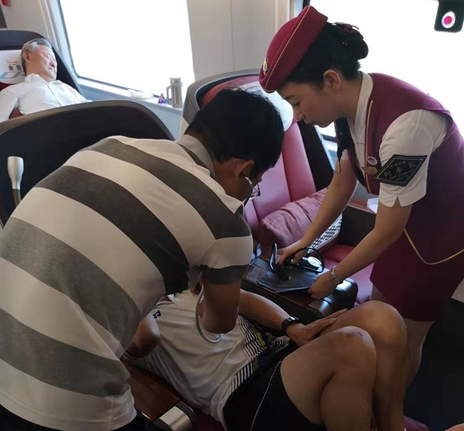 作家黃開建采訪G21復(fù)興號車組人員在搶救患病旅客