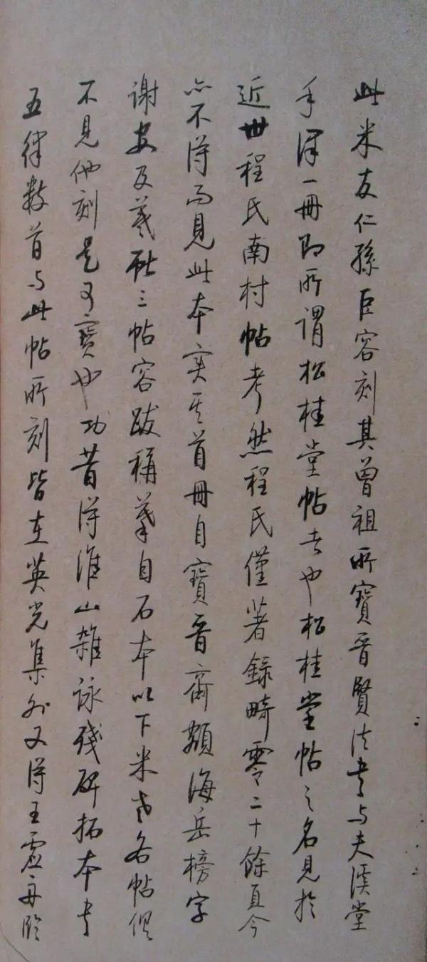 還有一例,日本友人捐贈給故宮一部法帖,帖上有三個題簽:清王鐸題為《宋米芾帖》,無名者題為《宋名賢帖》,日本宇野雪村題為《宋拓寶晉齋帖》;帖后有清翁同龢兩跋,雖言及程蘭川《帖考》記有《松桂堂帖》事,但不能斷。啟功先生過目,即斷“此米友仁孫巨容刻其祖所藏《寶晉齋法書》,與夫溪堂手澤一冊,即所謂《松桂堂帖》者也?!币驗橄壬粌H熟悉相關(guān)的文獻資料,而且,這之前就曾留意過《松桂堂帖》的相關(guān)問題,如查找《松桂堂帖》的帖目等。