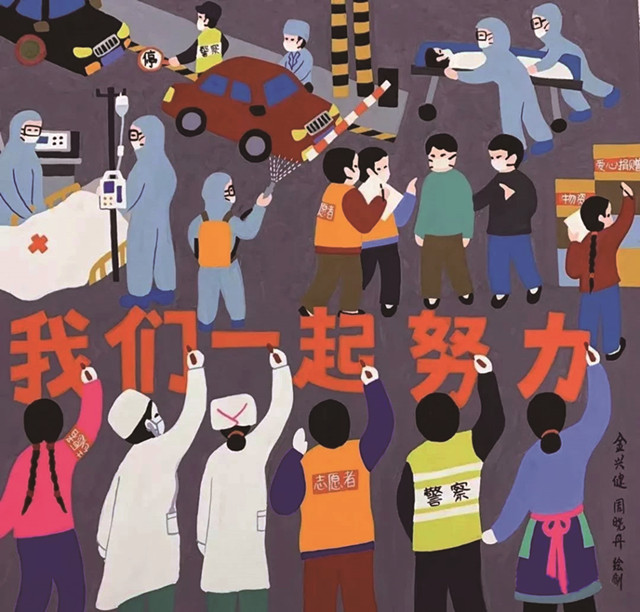 我們一起努力(金山農(nóng)民畫) 金興健 周曉丹 作