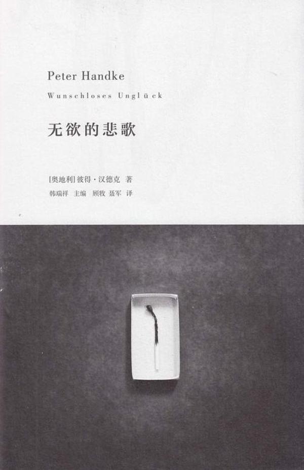 本書由兩部小說組成,包括《無欲的悲歌》(1972年)和《大黃蜂》(1966年)。漢德克創(chuàng)作《無欲的悲歌》的契機是他母親在1971年自殺,這部小說就是以一位五十一歲家庭婦女自殺的報紙報道開始,敘述者“我”感到有必要撰寫母親一生的故事。小說敘述沿著兩條路徑延伸,一是講述母親的故事,二是對這種講述的思考和論述,講故事與如何講故事交織在一起。故事講述的是他母親生與死的真實編年史:母親出生在一個天主教小農(nóng)環(huán)境里,接受的是無欲望、守秩序和忍受命運的道德教育,閱讀文學使她有能力認識自己,但她無法逃脫社會角色和價值觀念對自我生存的壓迫和毀滅,自殺成為她的必然歸宿?!洞簏S蜂》是漢德克發(fā)表的第一部小說,促使他放棄法律專業(yè)的學習而轉(zhuǎn)向文學創(chuàng)作。小說講述的是發(fā)生在南斯拉夫克爾克小島上(現(xiàn)屬克羅地亞)的故事,一個盲眼的小孩尋找在戰(zhàn)爭中失散的弟弟,同時在黑暗中感受煎熬。但是作者并沒有好好地講述這個故事,而是以斷片式、馬賽克式的方式講述對童年處境和事物的真實感受,因“失明”而打開了記憶之門以及全身的知覺,在記憶、知覺與想象的交替、跳躍、重復中表達了隱藏在語言背后的焦慮、不安和痛苦等復雜感受。