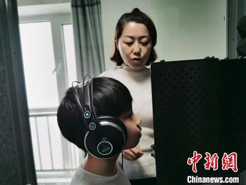河北省邢臺(tái)市育才小學(xué)的王小蹦和媽媽一起錄制“抗疫新兒歌”《病毒走開》。中國兒童中心供圖