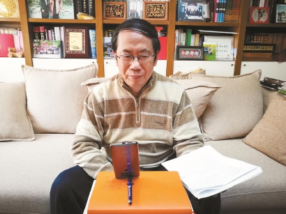 疫情期間,陳平原在家給學(xué)生直播上課。 圖片由受訪者提供