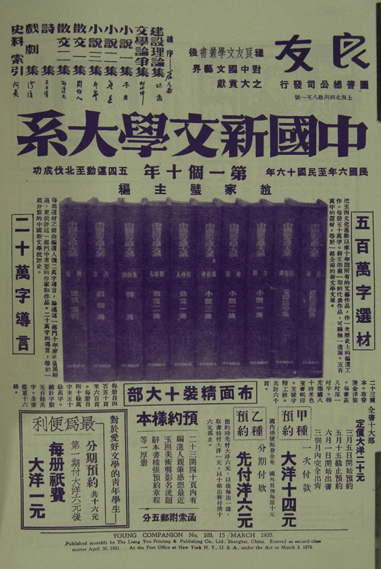 《良友畫報(bào)》第103期介紹《中國(guó)新文學(xué)大系》的整張廣告