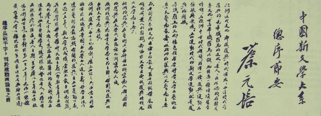 蔡元培時(shí)任中央研究院院長(zhǎng),同時(shí)又是“黨國(guó)要人”,需參加各種政務(wù)及社會(huì)活動(dòng),故這段時(shí)間著述不多;偶有著述,大都圍繞五四新文化運(yùn)動(dòng)展開。1934年1月1日發(fā)表《我在北京大學(xué)的經(jīng)歷》,詳細(xì)描述發(fā)源于北京大學(xué)的新文化運(yùn)動(dòng);同年6月13日撰《吾國(guó)文化運(yùn)動(dòng)之過去與將來》,稱“觀察我國(guó)的文化運(yùn)動(dòng),也可用歐洲的文藝復(fù)興作一種參證”,從先秦諸子百家一直說到“《新青年》盛行,五四運(yùn)動(dòng)勃發(fā)”,其中牽涉賽先生與德先生、語體文、西洋小說的翻譯、民歌的搜集、話劇的試驗(yàn)等——此文篇幅不長(zhǎng),卻為日后《大系》的《總序》埋下了伏筆;同年8月20日撰《哀劉半農(nóng)先生》、10月1日撰《劉半農(nóng)先生不死》、10月8日撰《劉復(fù)碑銘》[34]。就在這個(gè)節(jié)骨眼上,迎面碰上了《中國(guó)新文學(xué)大系》的出版計(jì)劃,難怪其不顧勞頓,一口應(yīng)承。據(jù)蔡元培1935年1月11日日記:“良友圖書公司編輯趙家璧到院,擬印《中國(guó)新文學(xué)大系》(第一個(gè)十年,一九一六——一九二七,即五四至五卅時(shí)代),要我作一篇總序,約三四萬言,二月二十八日以前繳稿。先作二三百言的提要,于下星期六來領(lǐng),備先付印征預(yù)約。”[35]出于對(duì)五四新文化及新文學(xué)的強(qiáng)烈興趣,蔡元培認(rèn)領(lǐng)了此幾乎不可能完成的任務(wù)。同年8月6日為《中國(guó)新文學(xué)大系》撰寫的《總序》,敘述歐洲近代文化是從文藝復(fù)興而來,而中國(guó)文化自先秦以至近代,自有其發(fā)展軌跡;陳獨(dú)秀主持《新青年》以及胡適、錢玄同等提倡白話文,既是思想革命,也是文學(xué)革命,可與歐洲文藝復(fù)興相比擬。文章結(jié)尾高屋建瓴: