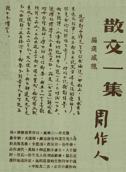 [17]參見趙家璧《編輯憶舊》172—174頁、182頁、202頁。趙家璧回憶有誤,胡適那時(shí)并非“北京大學(xué)校長(zhǎng)”,且因其政治立場(chǎng)并不被政府欣賞,不可能“對(duì)審查會(huì)也許能起掩護(hù)的作用”;但要說“對(duì)一般讀者”有“號(hào)召力”,那倒是真的。至于周作人,時(shí)人并不知道他日后會(huì)在抗戰(zhàn)中“落水”,以他當(dāng)年在文壇的地位及影響力,出任“散文一集”的編者乃求之不得,怎么會(huì)需要茅盾來為他辯解呢?