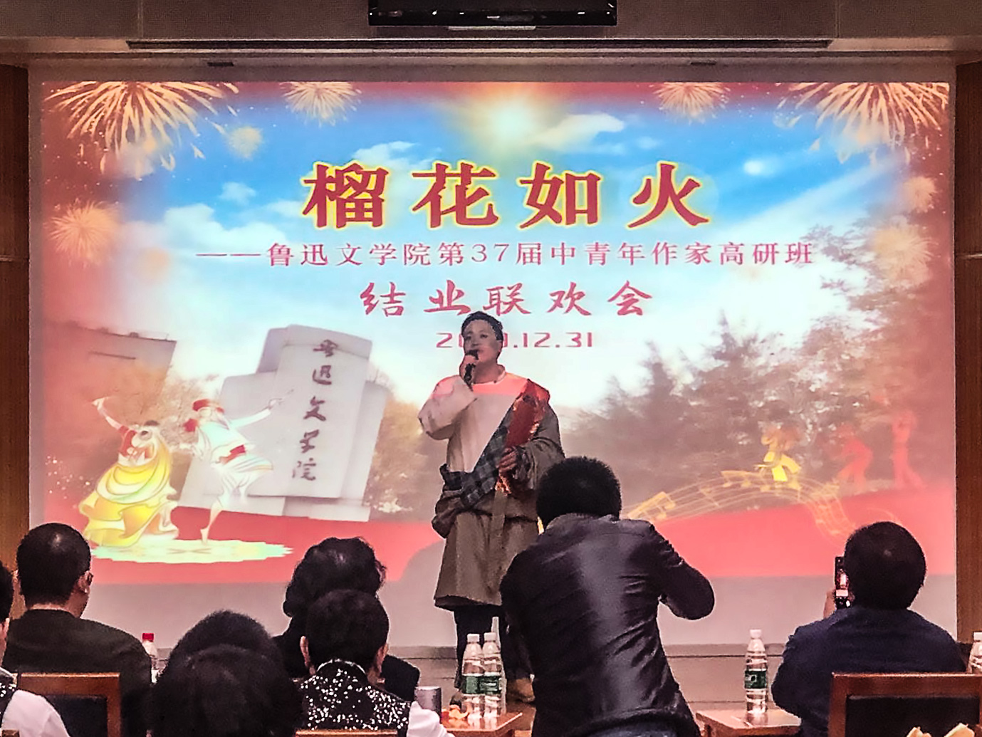 無論是文化背景、生活習慣還是年齡、創(chuàng)作實力,同學之間有著很大差異,年齡跨度甚至達到40歲,一起學習、生活難免會起一些爭執(zhí)和摩擦,如何凝聚人心,讓大家安心度過四個月的學習生活是班級黨支部書記、土家族作家劉少一除了創(chuàng)作之外需要操心的事。在他眼里,這個班級就像一個大家庭,大家能歌善舞,很有集體榮譽感,雖然偶爾會有小摩擦,但遇到事情就會擰成一股繩。在慶祝新中國成立70周年之際,魯37的同學與老師們在中國作協(xié)機關黨委主辦的慶祝活動上聯(lián)袂演出,僅用兩天的時間就排練出榮獲特等獎的節(jié)目。班里的門巴族作家多布杰突發(fā)急病,魯院的領導和老師們第一時間把他送到醫(yī)院搶救,給予了無微不至的關心和幫助;很多同學捐款出力,班委還自愿接受排班,照顧多布杰。這些點滴都在不斷匯聚力量,將原本來自祖國大江南北、互不相識的同學緊緊聯(lián)系在一起。