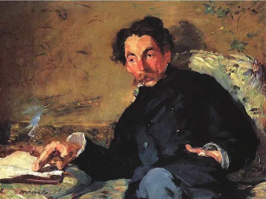 1883年,魏爾倫發(fā)表《受詛咒的詩(shī)人群像》,翌年,于司曼斯出版《逆向》,二人相繼將馬拉美吹捧上象征派圣壇。作為該派壇主,馬拉美資助高更遠(yuǎn)赴異域塔希堤,高更為他繪肖像,深切表達(dá)誠(chéng)摯敬意。這之前,馬奈為《牧神午后》插圖,1876年還給他畫像。馬奈死后,他生時(shí)最親近的女友轉(zhuǎn)為馬拉美的情婦。能達(dá)到如此境地,《法蘭西詩(shī)典》所列“尋常生活平庸而貧瘠的馬拉美”可說(shuō)是志得意滿了。
