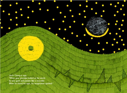 澎湃新聞:這個故事是關于先人、關于家庭的,可以說表達的核心情感相當中國,而您采取的視覺風格卻非常多元,我覺得現(xiàn)在中國新一代的繪本創(chuàng)作者好像普遍都不再愿意以一些傳統(tǒng)元素和技法、以一種一目了然的“中國風”來講中國故事,您怎么理解這種趨勢?