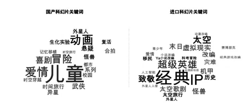 圖1 國產(chǎn)科幻影片與進(jìn)口科幻影片題材對(duì)比