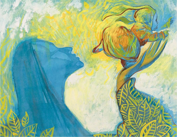 澎湃新聞:《媽媽身上有個樹林》是您跟梅子涵老師的第二次合作了,這是一個詩歌文本,對您來說,詩歌文本的繪本化是不是比故事文本更有挑戰(zhàn)性?您之前談到這本書的創(chuàng)作,提出了一個“具體畫面+抽象內(nèi)容=詩意體驗”的說法,能具體解釋一下嗎?