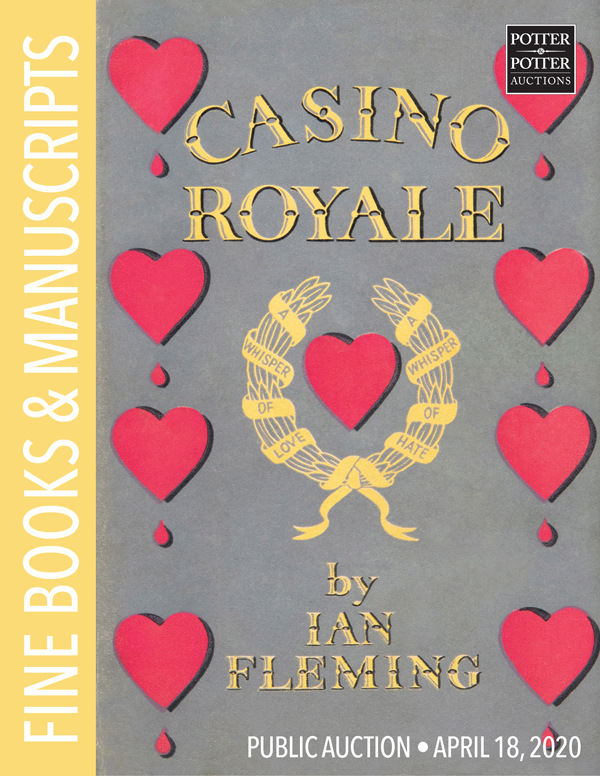 盡管最新一部“007”電影《無暇赴死》改檔至今年十一月間,“邦德年”熱度猶在??偛课挥谝晾Z伊州芝加哥的Potter&Potter拍賣行,將于美國中部時(shí)間4月18日上午10:00舉辦一場(chǎng)精品書籍和手稿拍賣會(huì)。拍賣會(huì)主題海報(bào)創(chuàng)意,來自1953年第一部007小說初版封面,這也揭示了此次拍場(chǎng)上的“高光”所在:大量關(guān)于詹姆斯·邦德和原著作者伊恩·弗萊明的書籍、文章、雜志,以及圖片、手稿,將是近年來罕有的一次集中亮相。