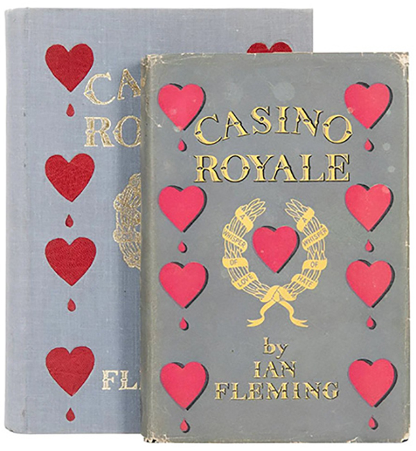 誠如主題海報(bào)所示,作為這批007相關(guān)書稿中的明星,1953年4月13日問世的《皇家賭場(chǎng)》(Casino Royale)是這一系列間諜小說的開山之作。由總部位于倫敦的出版商喬納森·凱普(Jonathan Cape,現(xiàn)屬企鵝蘭登書屋)推出,目前市面估價(jià)為8000-12000美元。貴為“1號(hào)拍品”的《皇家賭場(chǎng)》是當(dāng)年初版印數(shù)4728中的一本,據(jù)信余者多數(shù)已被公共圖書館收藏。