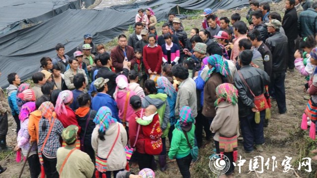 工作隊(duì)聘請(qǐng)農(nóng)科站技術(shù)員為村民講解種植技術(shù)現(xiàn)場(chǎng)。