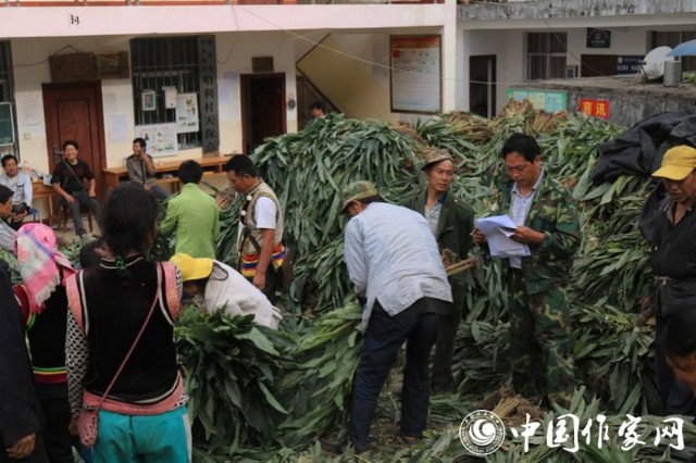 扶貧工作隊(duì)為村民發(fā)放草果苗。