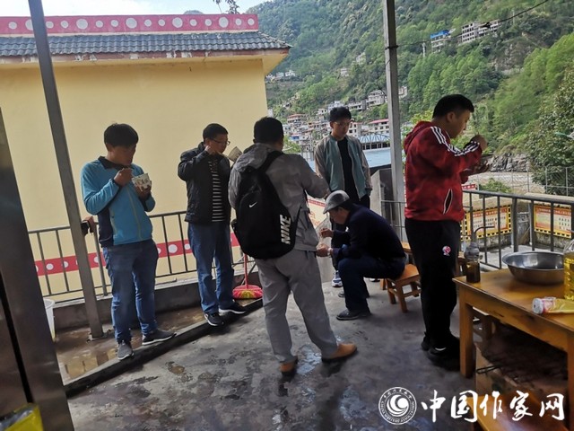 工作隊(duì)員們平時(shí)大多是這樣站著吃飯。放下碗,立馬奔赴脫貧攻堅(jiān)戰(zhàn)場(chǎng)。