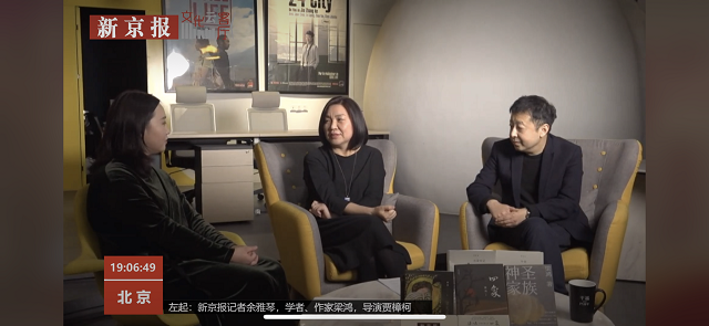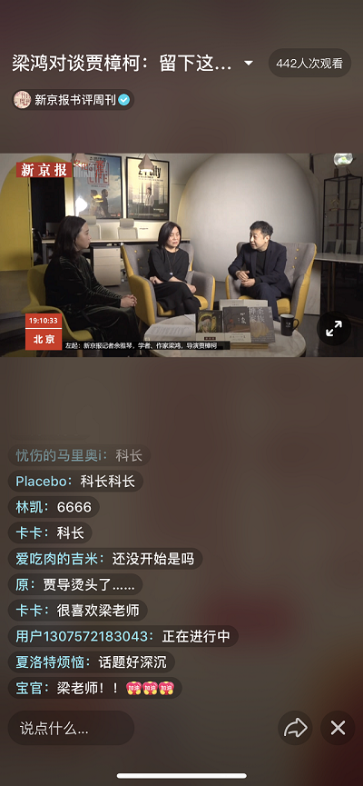 直播開(kāi)始,梁鴻回憶當(dāng)時(shí)參與新片拍攝是在汾陽(yáng)的一個(gè)裁縫店里,采訪持續(xù)了三個(gè)多小時(shí)?!百Z導(dǎo)準(zhǔn)備得很充分,他拿了厚厚一疊提綱,問(wèn)了我很多事情。這些都是自己很久沒(méi)想過(guò)的童年、少年生活,以及家庭的故事,所以我一下子特別投入。這種感覺(jué)就好像一個(gè)人在帶領(lǐng)你重新回望過(guò)去那一段村莊的生活。采訪中,我感覺(jué)又重新回到梁莊的那條大河,而且更加強(qiáng)調(diào)了‘梁莊人’的身份,雖然我離開(kāi)了這個(gè)地方,但突然間覺(jué)得自己跟這片大地連在一起。”