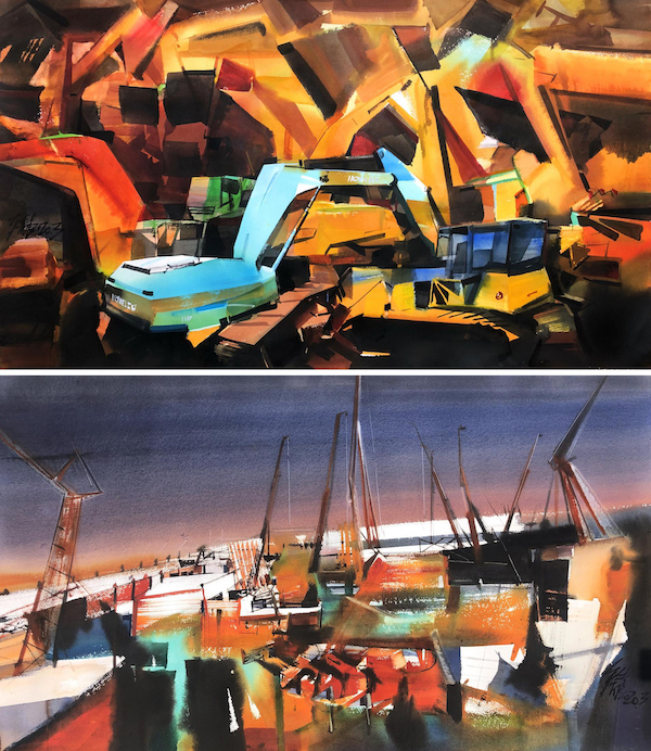 當(dāng)時我選取了挖掘機(jī),以俯瞰的視角看,就像玩具一樣,卻日夜不停地建設(shè),他就像一位普通的勞動者、普通的民眾,承擔(dān)著一點(diǎn)點(diǎn)個人的力量。