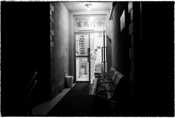 雍和(上海市攝影家協(xié)會主席) :我在大年三十的晚上拍下這張照片,時間節(jié)點(diǎn)是上海一級響應(yīng)的時間。這張照片不是我刻意拍的,那天正好去醫(yī)院探望朋友,就在發(fā)熱病房外拍了一張照片。我拍照沒有條條框框,只是看到一個點(diǎn)就拍了。就這樣拍,從那天拍到今天為止,106天我沒有間斷。我的創(chuàng)作目的很簡單,只要能為歷史、為上海這座城市留下一點(diǎn)記錄就行了。