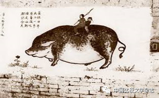 再比如這幅圖,旁邊的配詩“肥豬賽大象”很容易被解讀為對大躍進時期農(nóng)業(yè)生產(chǎn)浮夸風(fēng)的反諷式隱喻,但倘若放到了遲叔昌的科幻小說《割掉鼻子的大象》中,它便是同時具有了現(xiàn)實真實性與隱喻性雙重功能的認知指涉對象,讓讀者能夠超越了抽象概念層面,調(diào)動更為豐富的具身認知,從不同維度來理解這一復(fù)雜現(xiàn)實。