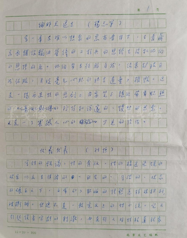 評語中的《海昨天退去》《伏羲伏羲》《少將》三個小標題,正是當年還是青年作家的楊志軍、劉恒與喬瑜參加此次文學新人初選階段的作品。根據上文提到的“初選名單”可知,除以上三種外,入圍初選名單的還有殘雪的《天堂的對話》、謝友鄞的《滋味》、格非的《青黃》等七部作品。包括汪曾祺、柯靈、茹志娟、袁鷹等在內的評委所要做的,就是從這七部作品中選出自己鐘意的三部。顯而易見,汪曾祺最終投了楊志軍、劉恒和喬瑜的票,這一宗資料即是明證。
