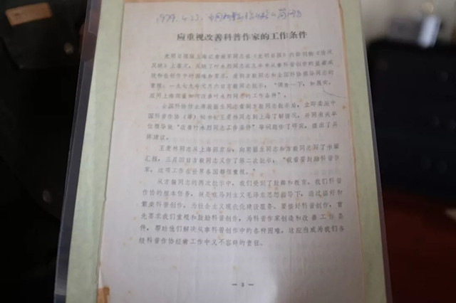1979年4月23日,中國科學(xué)創(chuàng)作協(xié)會簡報上刊發(fā)的《應(yīng)重視改善科普作家的工作條件》