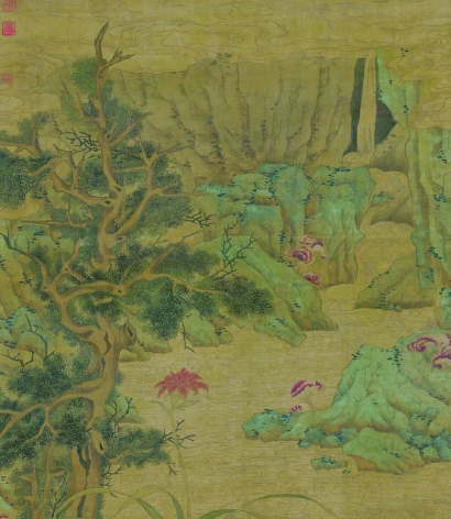 《五瑞圖》是標準的文徵明風格,是一種青綠山水?!拔迦稹敝傅木烤故鞘裁??中國歷史上存在著多種說法。在文徵明的這幅畫里,專家傾向于認為“五瑞”指的是古柏、萱草、靈芝、祥云、奇石??偠灾拔迦稹逼鋵嵍即碇袊藢┟癜?、幸福祥瑞的祈求和希望。這在經(jīng)歷了疫情的當下,顯得意味深長。