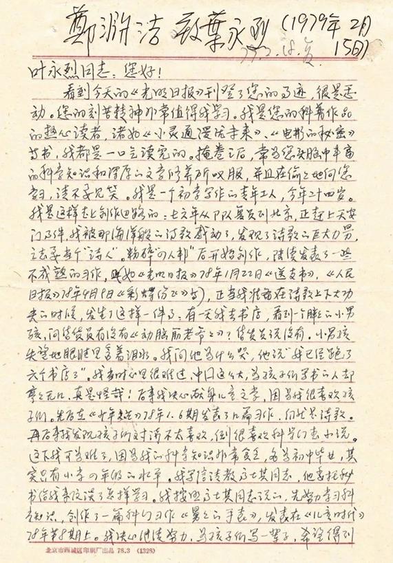 1979年,讀者鄭淵潔致信葉永烈(圖片來源于網(wǎng)絡(luò))