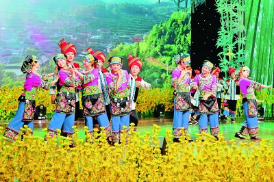 湖南省花垣縣十八洞村曾是一個(gè)深度貧困村,全村貧困發(fā)生率高達(dá)57%。通過(guò)因地制宜、分類指導(dǎo)、精準(zhǔn)扶貧,十八洞村百姓收入增加,村容村貌變化,已經(jīng)成為全省文明村和旅游定點(diǎn)村。2016年,十八洞村實(shí)現(xiàn)整村脫貧。圖為十八洞村村民表演節(jié)目《美麗名片》。劉振軍攝/光明圖片