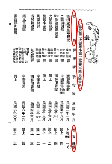由(1)、(2)知此書有精裝和平裝本。精裝1917年3月初版,收入懷蘭室叢書。沒有說明的三冊應(yīng)是平裝本,1917年3月初版,為小說匯刊95-97。即,精裝本、平裝本初版時間同為1917年3月,書名同為《叢刊》。