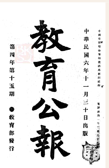 ?《教育公報》第四年第十五期,1917年11月30日出版,教育部教育公報經(jīng)理處發(fā)行。
