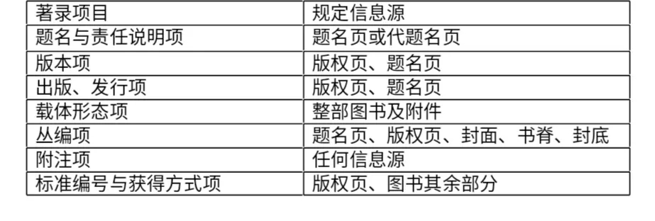 《中國文獻(xiàn)編目規(guī)則(第二版)》規(guī)定普通圖書著錄規(guī)則適用于民國圖書。2. 0. 5. 2條款規(guī)定了普通圖書各著錄項目的規(guī)定信息源及其選取的先后順序(如下表)。