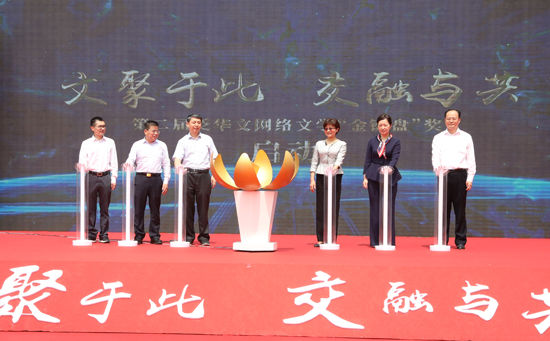 徐寧副部長與汪興國、盛蕾、李貞強、張思明、匡暉共同上臺啟動第二屆泛華文網(wǎng)絡文學“金鍵盤”獎。本屆評獎作品的范圍為在全國各大文學網(wǎng)站發(fā)表,并于2018年1月至2019年12月期間完本或翻譯成外文且在國外網(wǎng)站連載或出版的華文網(wǎng)絡文學作品(含繁體文字作品),以及在此期間實體出版和影視、游戲、動漫改編的華文網(wǎng)絡文學作品。具體評獎公告將在江蘇作家網(wǎng)發(fā)布。